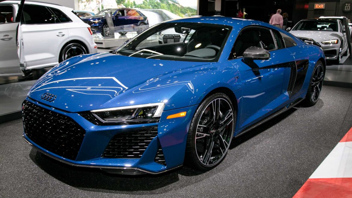 The new R8 is available in two colors: Ascari Blue and Kemora Gray. The standard models feature some gloss-black detailing and new 19-inch alloys. Meanwhile, the performance models replace those all with matte titanium.